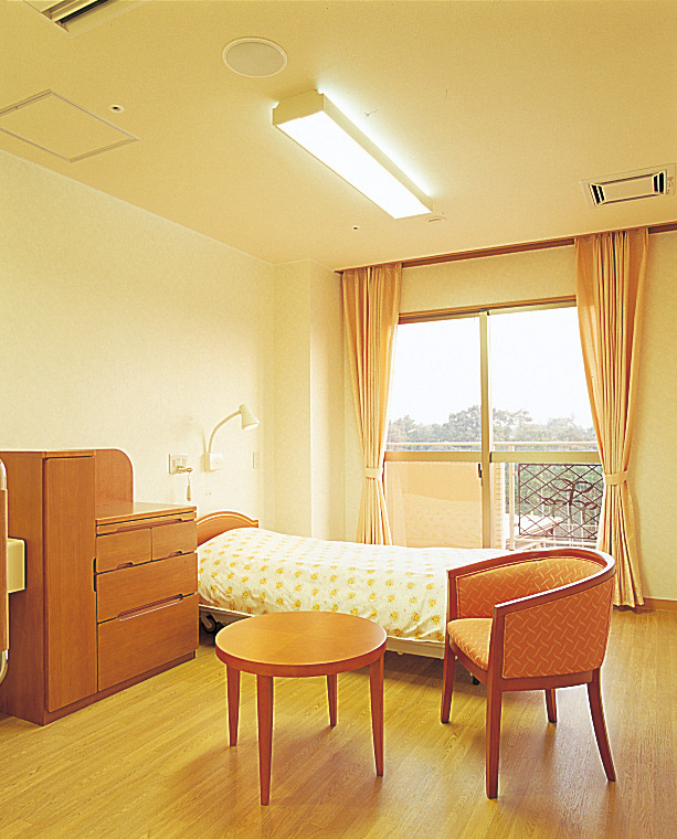 でぃあほうむ吉野は、この場を単なる「施設」ではなく、ご利用者の方にとっての、もう1つの「住まい」としてとらえています。「住まい」であれば、日々の生活が何よりも大切。リラックスした快適な空間こそが欠かせません。木のぬくもりを活かし、やさしいカラーリングにも配慮しております。居室の状況としましては2階50床、3階30床となっております。2階50床のうち20床をユニット型準個室とし、その他多床室となっております。